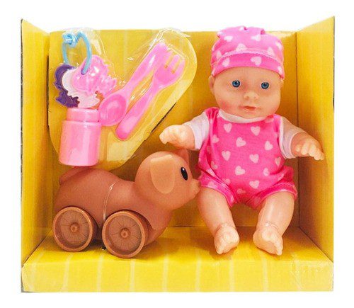 – 5 Accesorios ( Perrito, tenedor, cuchara, sonajero y frasquito )